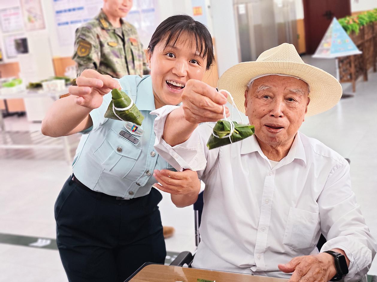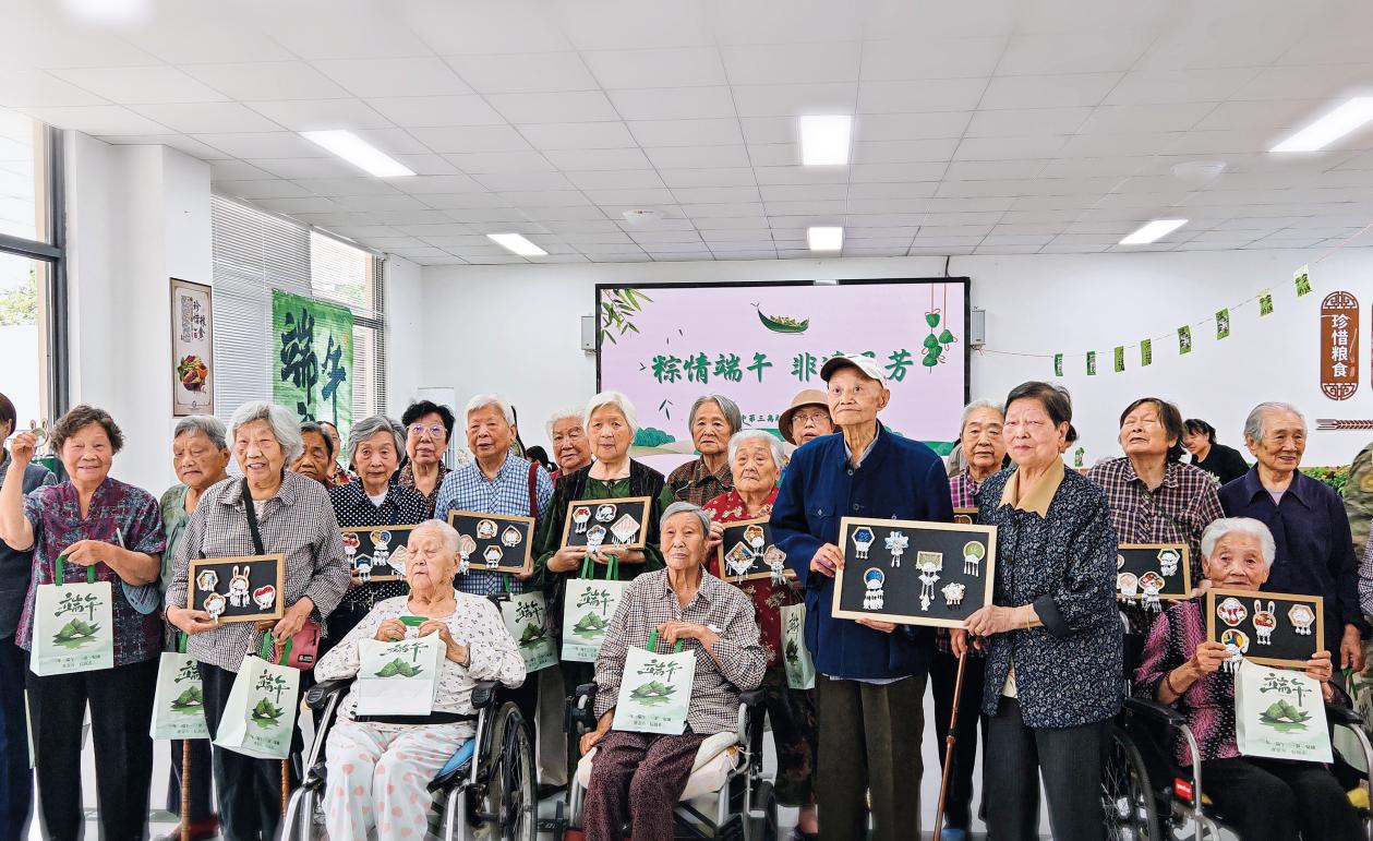 渝中第三離職干部休養(yǎng)所工作人員與老干部一起包粽子、過端午。