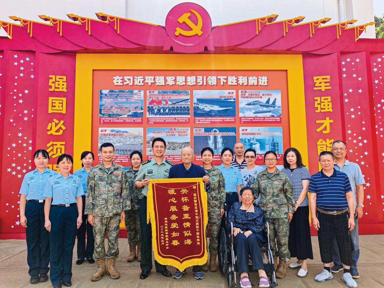 老干部陳獻章及家人為感謝渝中第三離職干部休養(yǎng)所醫(yī)護人員精心照顧專門送來錦旗并合影留念。