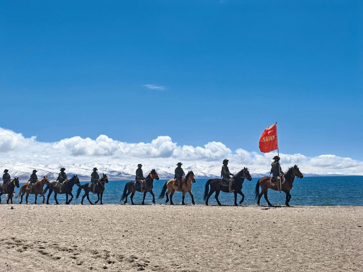 拉薩市組織民兵騎兵分隊(duì)在納木湖周邊巡邏執(zhí)勤。(攝影/劉家樂)