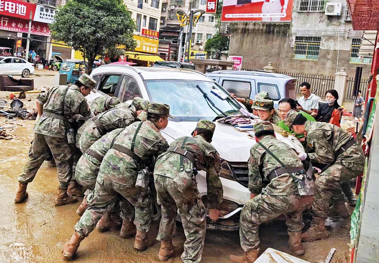 “大家趕緊收拾重要物品,往高處撤離!”“暴雨還在下,動(dòng)作再快些!”一聲聲急切的呼喊在高山深谷間回蕩,催促著大家爭分奪秒與洪水賽跑。救災(zāi)現(xiàn)場民兵們冒著雨、流著汗,向著最險(xiǎn)處、最急處挺進(jìn)。