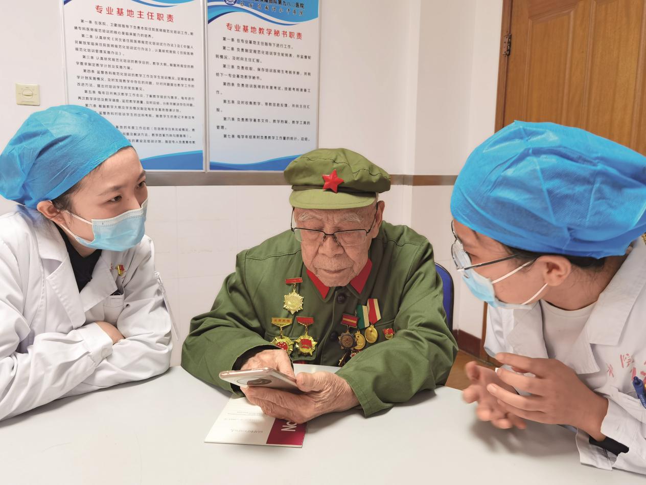 離休后的劉世鉞經(jīng)常與所在干休所醫(yī)護人員在一起交流工作心得。(攝影/戎宇翔)