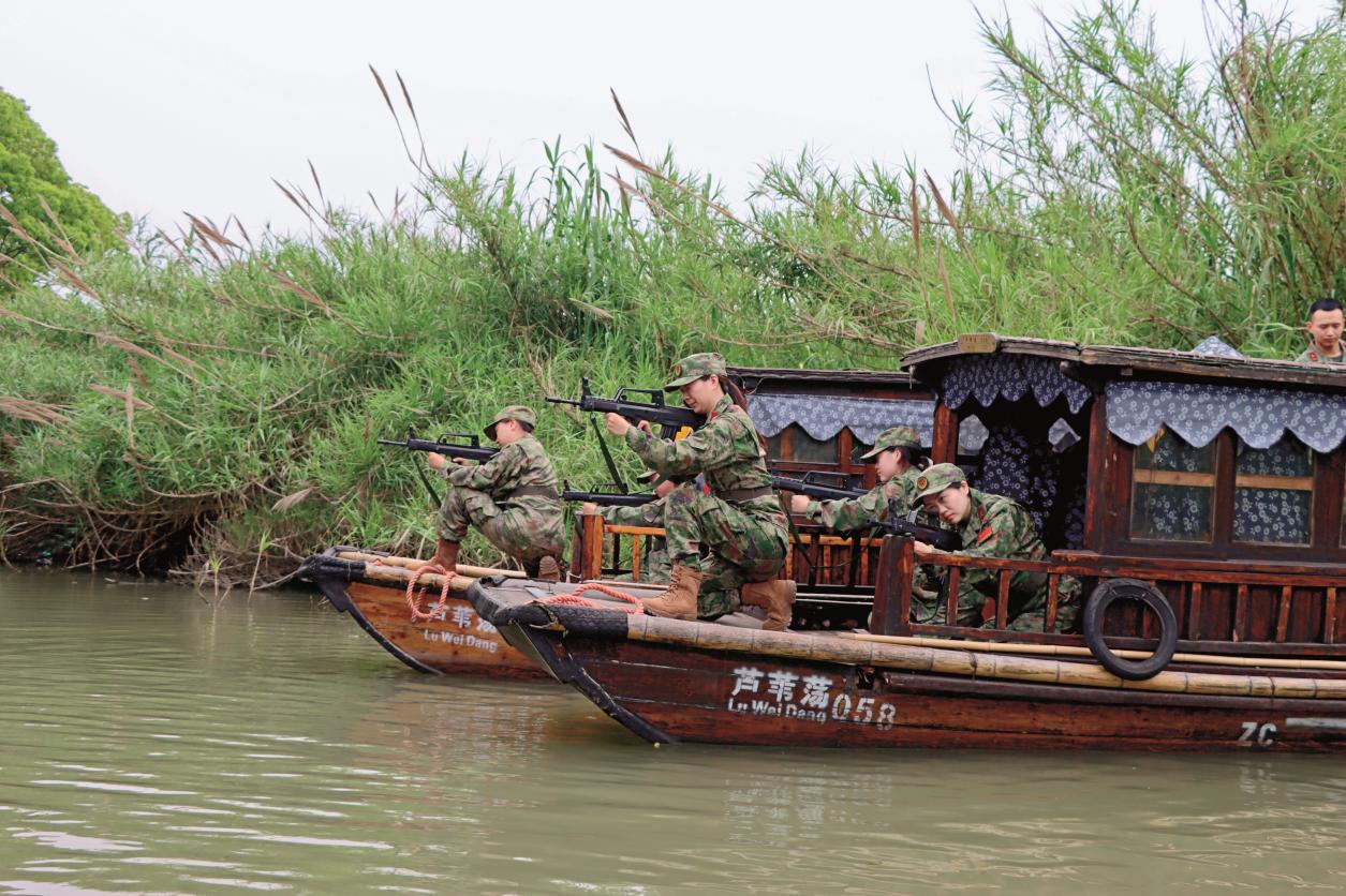 陽澄湖上薄霧盡散,蘆葦深處京韻悠揚,不由讓人想起了那段烽火歲月。1939年,朱凡放棄復旦大學的學業(yè),積極投身抗日救亡運動,后因表現(xiàn)突出被組織派到橫涇地區(qū)(今沙家浜)發(fā)動群眾為新四軍傷病員送飯送藥傳遞情報,在敵人眼皮子底下與日偽軍展開反“清鄉(xiāng)”斗爭,守護剛剛建立起來的抗日根據(jù)地。為銘記抗戰(zhàn)歷史、傳承紅色基因,讓“蘆蕩火種”越燃越旺,2009年江蘇省常熟市軍地聯(lián)合組建沙家浜女子民兵連,并積極用“沙家浜精神”建連育人,在學習英雄事跡中傳薪火、在踐行職責使命中練硬功、在助力老區(qū)發(fā)展中當模范,以實際行動書寫奮進新征程、建功新時代的嶄新篇章。