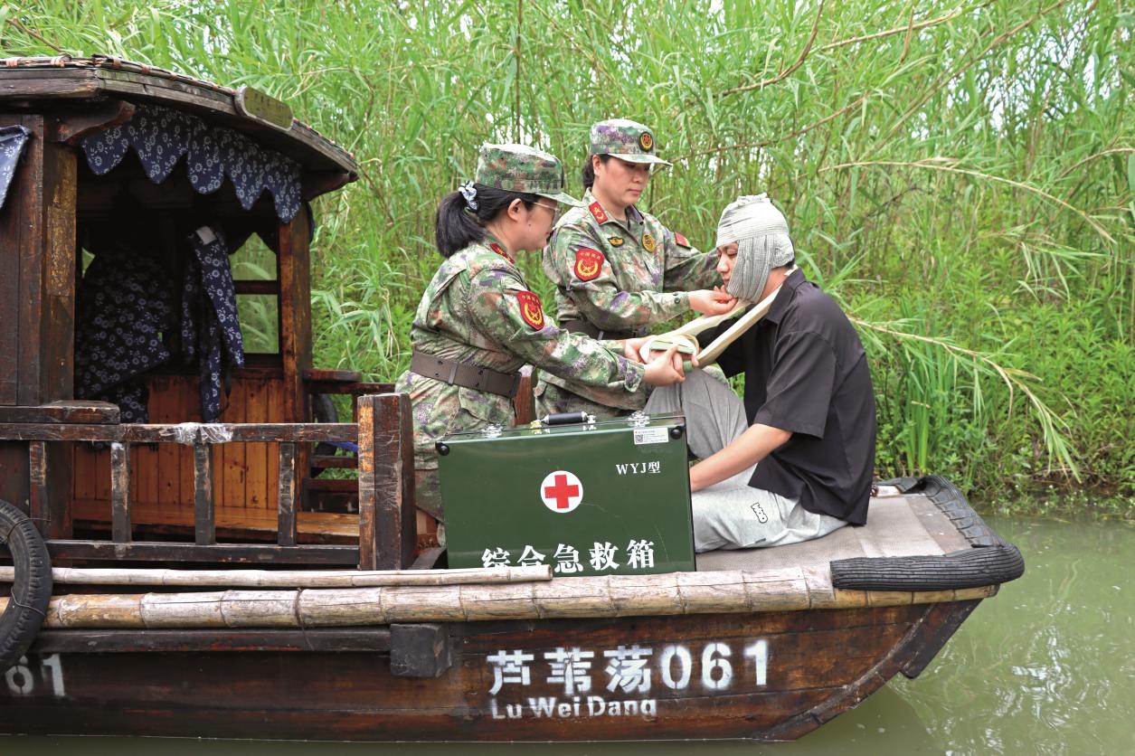抗日戰(zhàn)爭時期,沙家浜人民群眾利用“水網(wǎng)密布、河湖交錯”的地理特點,用船槳為新四軍傷病員劃出一條“生命通道”。近年來,該民兵連在英雄戰(zhàn)斗過的蘆葦蕩中積極開展“水陸兩棲”訓練,從難從嚴抓實醫(yī)療救護、信息通信、衛(wèi)勤保障等聯(lián)演聯(lián)訓活動,全面提升支援保障打贏能力。她們針對水上救援實戰(zhàn)要求,利用當?shù)鼐仍牸夹g(shù)裝備優(yōu)勢開展訓練,在自然水域設置激流回旋、水上搜救等險難課目,模擬復雜水流環(huán)境錘煉民兵舟艇操作、救援定位等技能;她們結(jié)合季節(jié)性特點開展溺水急救、冰面救援等課目特訓,會同地方有關應急力量開展洪澇災害中人員轉(zhuǎn)移與物資運送實訓實練,打造形成了傳統(tǒng)技能與新質(zhì)力量相結(jié)合、基礎訓練與實戰(zhàn)演練相結(jié)合、常態(tài)備勤與專項任務相結(jié)合的“三結(jié)合”訓練模式。