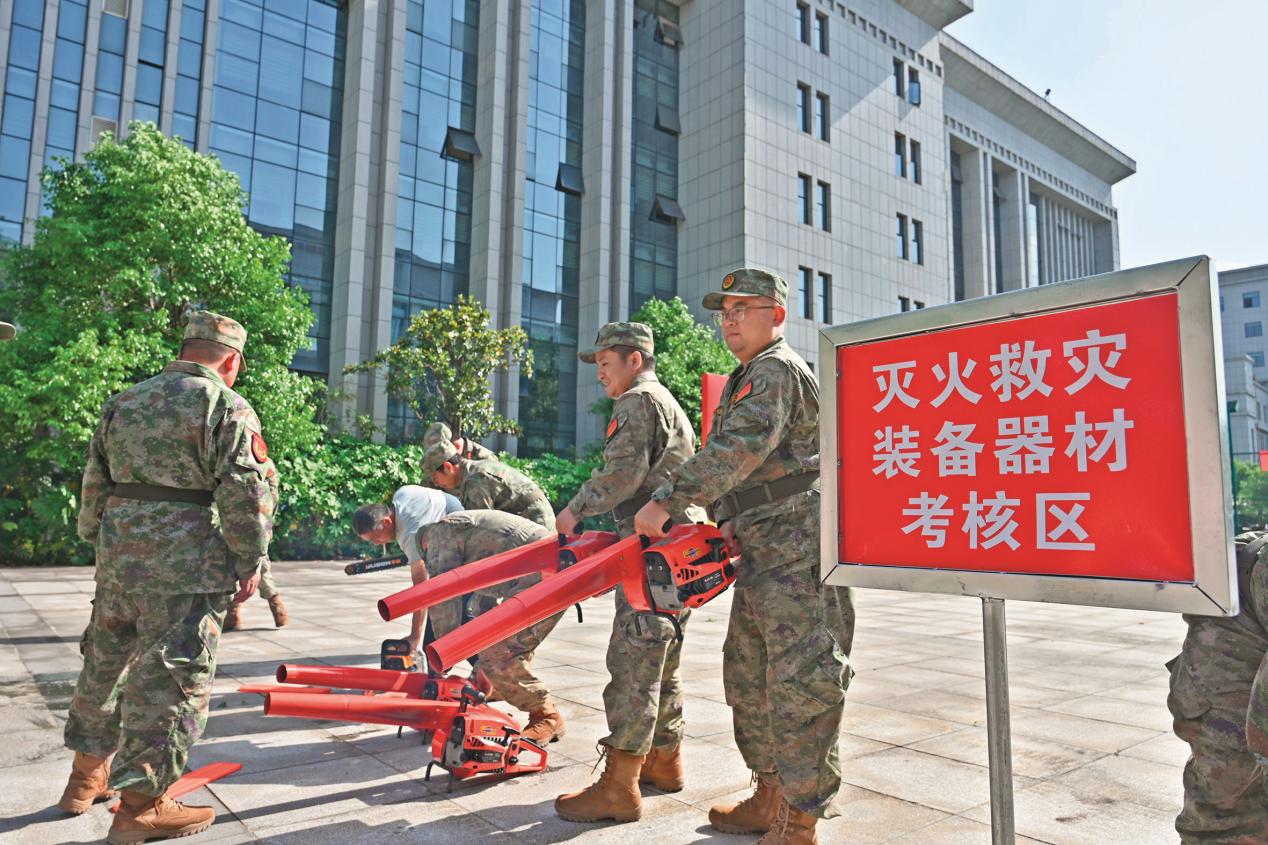 左權民兵應急連組織民兵進行滅火救災裝備器材操作訓練考核。