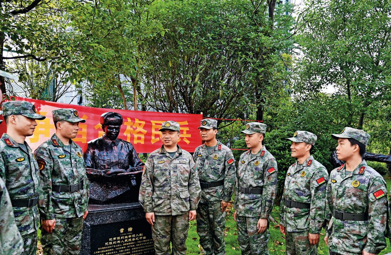 左權民兵應急連組織民兵骨干到紅色場館參觀見學并在雷鋒雕像前開展現地交流。