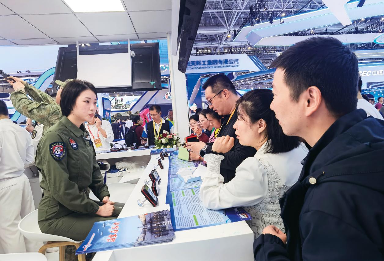 “風景這邊獨好,我以祖國為傲。”在各個熱門展臺,一群身披“征兵宣傳員”綬帶的人也成為了亮麗“風景線”,他們中有在部隊立功受獎的現(xiàn)役官兵、有優(yōu)秀退役大學生士兵,也有活躍在征兵一線的工作人員?!吧頌橐幻聲r代中國青年,曾經(jīng)在部隊得到過摔打磨煉,我感到無比驕傲!”大學生退役士兵、征兵宣傳員梁靚靚動情地說。幾年前,梁靚靚在上大學時參觀了珠海航展,被強大國防實力深深影響的她當年就報名應(yīng)征入伍,退役復學后主動加入學校國旗護衛(wèi)隊,積極參加學校國防教育和征兵宣傳活動,像“磁場”一樣吸引身邊更多的同學參軍入伍。