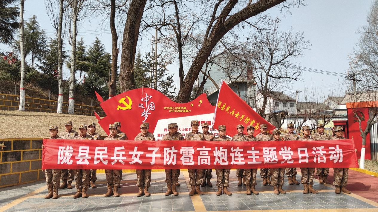 隴縣民兵女子防雹高炮連到紅色場館開展主題黨日活動。