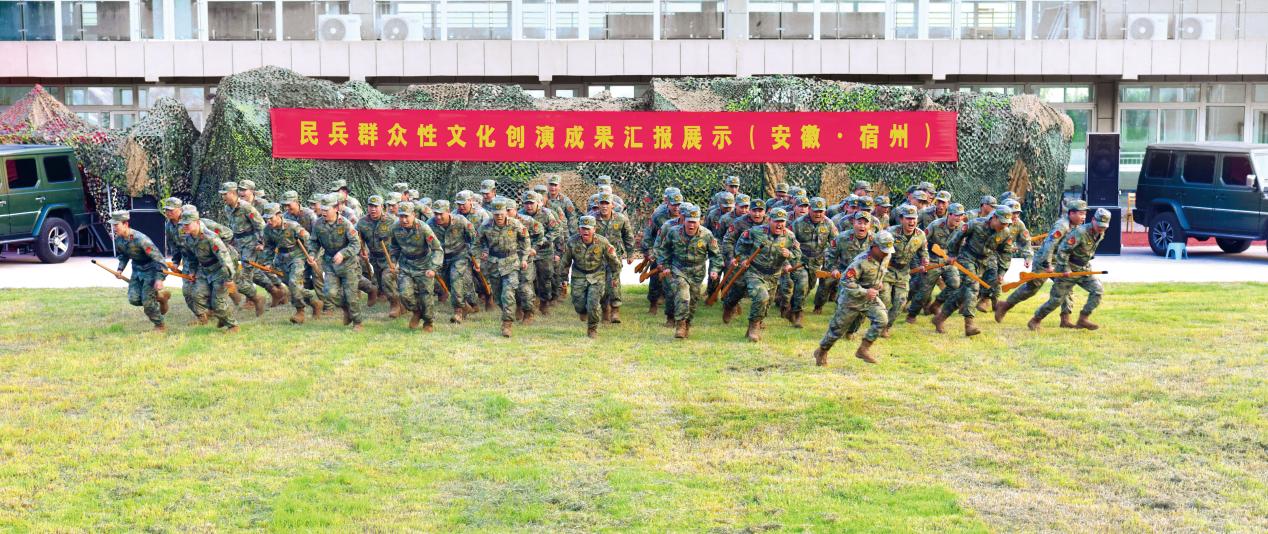 安徽省宿州軍分區(qū)舉行民兵群眾性文化創(chuàng)演成果匯報展示。(攝影/李金春)