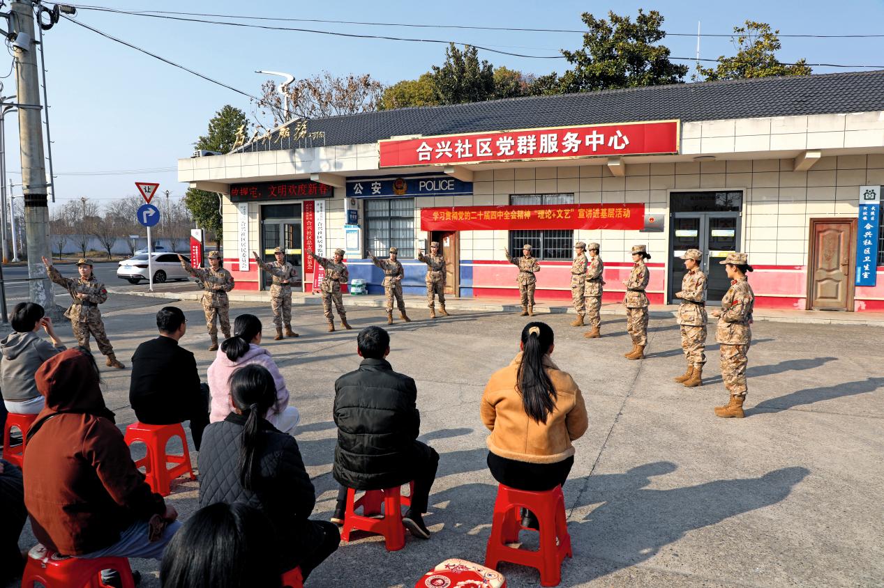 武陵區(qū)女子民兵排組織民兵走進(jìn)社區(qū)開展“理論+文藝”宣講活動。