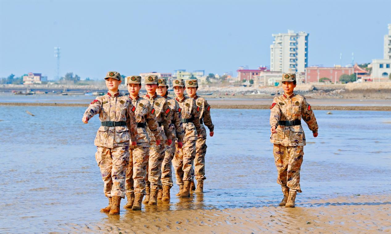 新入隊的民兵從跨進(jìn)哨所的第一天起,鄭小鳳就組織大家練體能、強(qiáng)技能:上級要求女民兵只練3公里長跑,她們卻自我加碼練5公里長跑;海上運(yùn)動靶射擊訓(xùn)練,姑娘們主動挑戰(zhàn)自我、趴在潮濕的沙灘上練瞄準(zhǔn)擊發(fā),且一趴就是幾個小時;她們在雜草叢生、亂石滿地的半山腰練習(xí)匍匐前進(jìn),原本嬌嫩的胳膊肘和膝蓋磨出了厚厚的一層老繭。