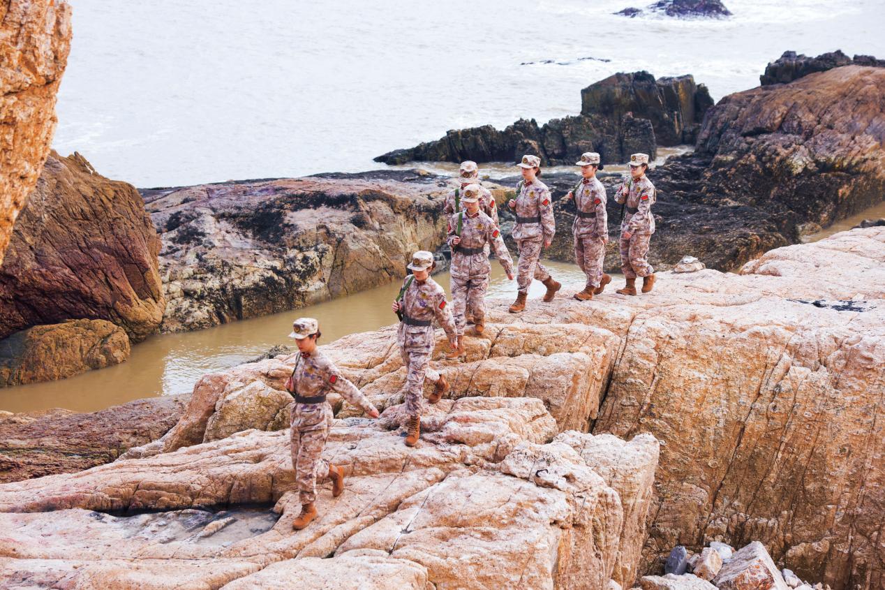 溫嶺市雷公山女子民兵哨所民兵正在巡邏查灘。(攝影/朱昱達(dá))