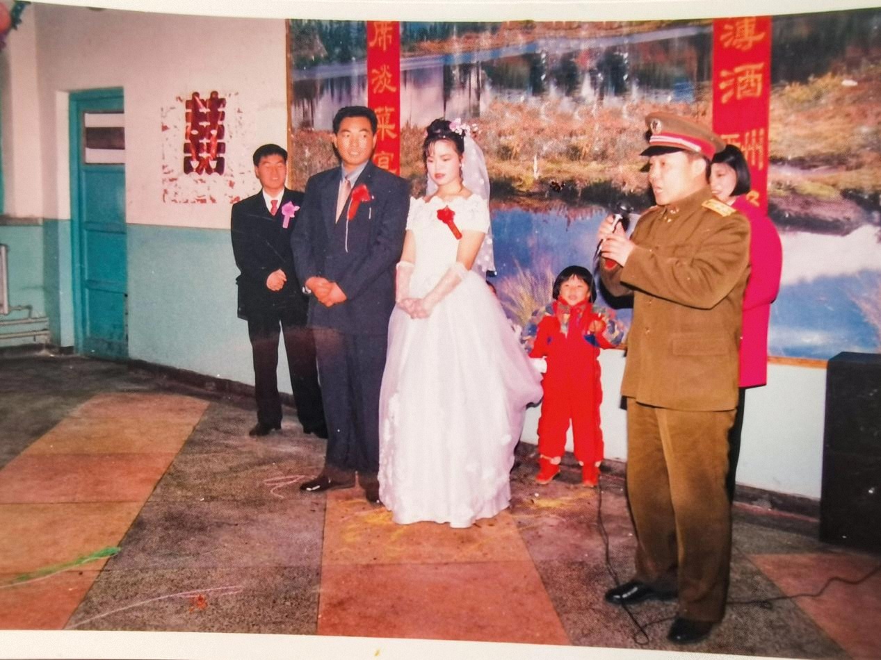 1998年孫姍與丈夫的婚禮在駐新疆某部的禮堂內(nèi)舉行。