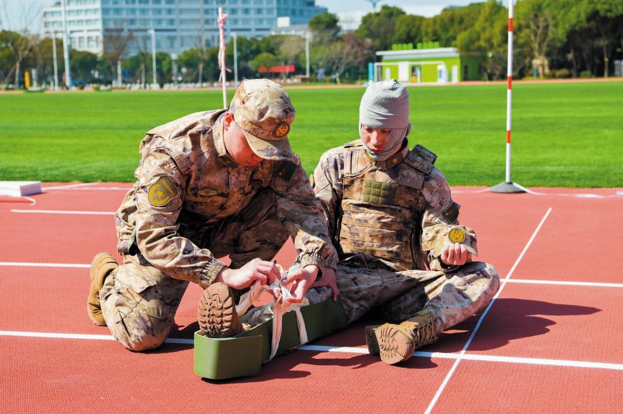 嘉興離職干部休養(yǎng)所組織文職人員開展戰(zhàn)場(chǎng)救護(hù)課目訓(xùn)練。