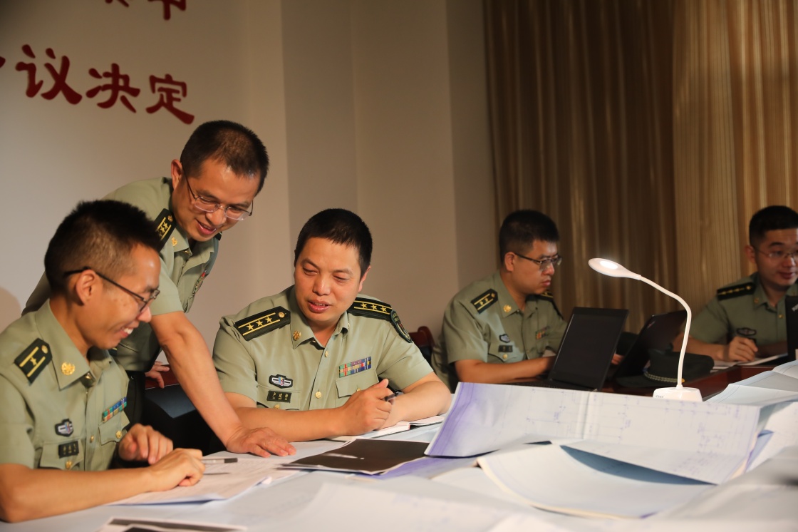 戰(zhàn)略支援部隊某部高級工程師淳靜(左二)帶領(lǐng)團隊開展課題研討論證(7月16日攝)。 新華社發(fā)
