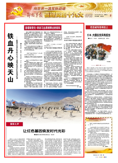 我們要緊跟黨的創(chuàng)新理論步伐,用習(xí)主席系列重要講話精神武裝頭腦,使紅色基因的傳承更具時代性。黨的十九大即將勝利召開,越是在這個時候,我們越要保持紅軍部隊的本色,跑好傳承紅色基因的“接力棒”,在強軍征程上走前列、作表率。要聚焦履行守疆穩(wěn)疆使命任務(wù)錘煉打贏本領(lǐng),讓官兵在傳承紅色基因中把當(dāng)兵打仗、帶兵打仗、練兵打仗的思想牢固樹起來,把能打勝仗的本事逼出來。要把遂行急難險重任務(wù)作為錘煉血性虎氣的絕佳平臺,不斷激發(fā)官兵練兵備戰(zhàn)的熱情,培育“一不怕苦、二不怕死”的戰(zhàn)斗精神。要把崗位實踐作為賡續(xù)紅色基因的廣闊平臺,督促官兵從一崗一哨入手,從一言一行開始,著力在內(nèi)化于心、外化于行中爭做“四有”新一代革命軍人,立起紅軍傳人的好樣子。