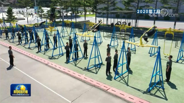 在訓練場,看到飛行學員正在進行旋梯訓練,習主席親切地同大家交流。