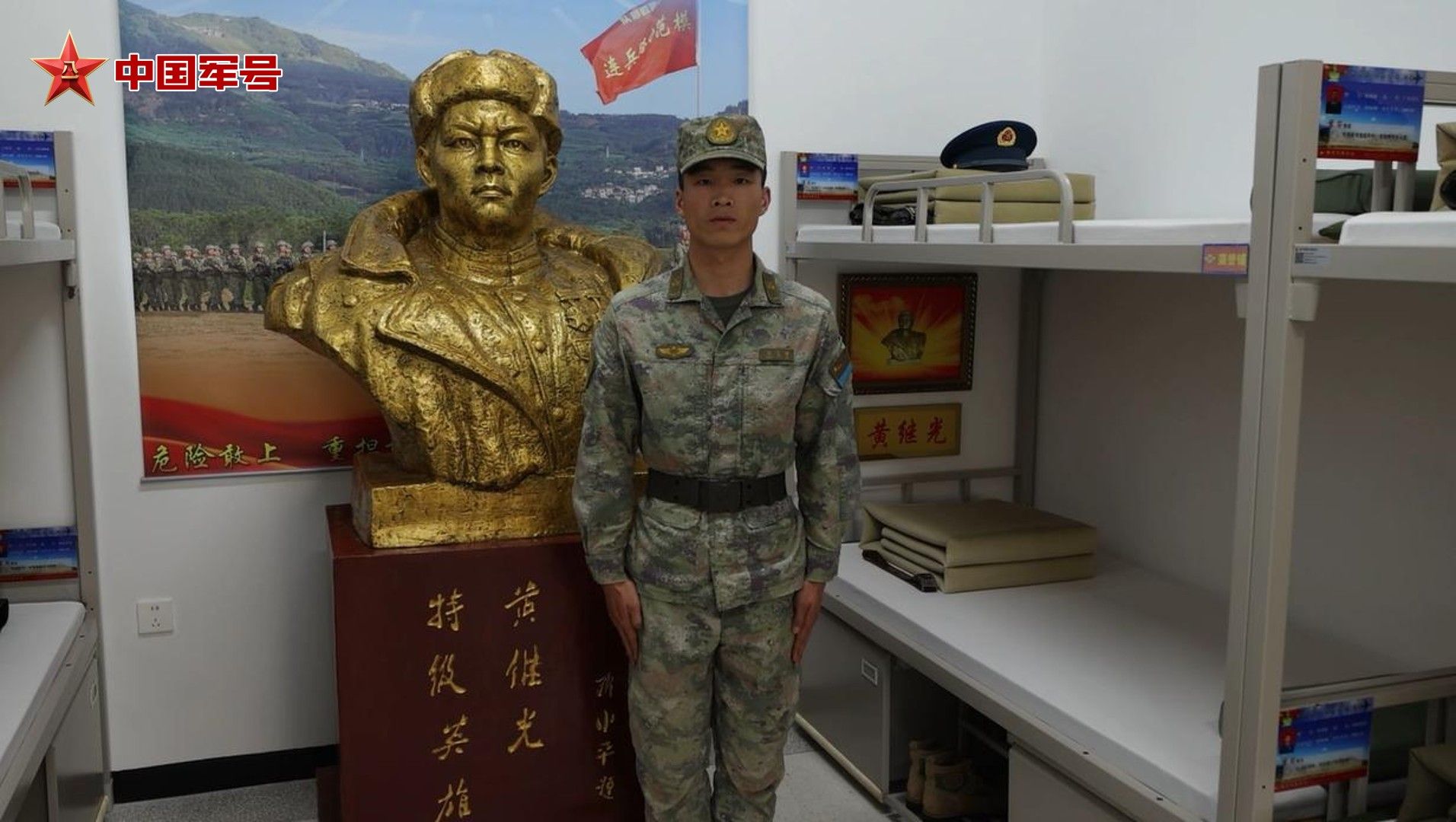 營房里,黃繼光班現(xiàn)任班長正整理著黃繼光老班長的床鋪。多年來,無論部隊(duì)移防還是執(zhí)行任務(wù),這張床鋪始終保留,每天整理、疊放,從未間斷。