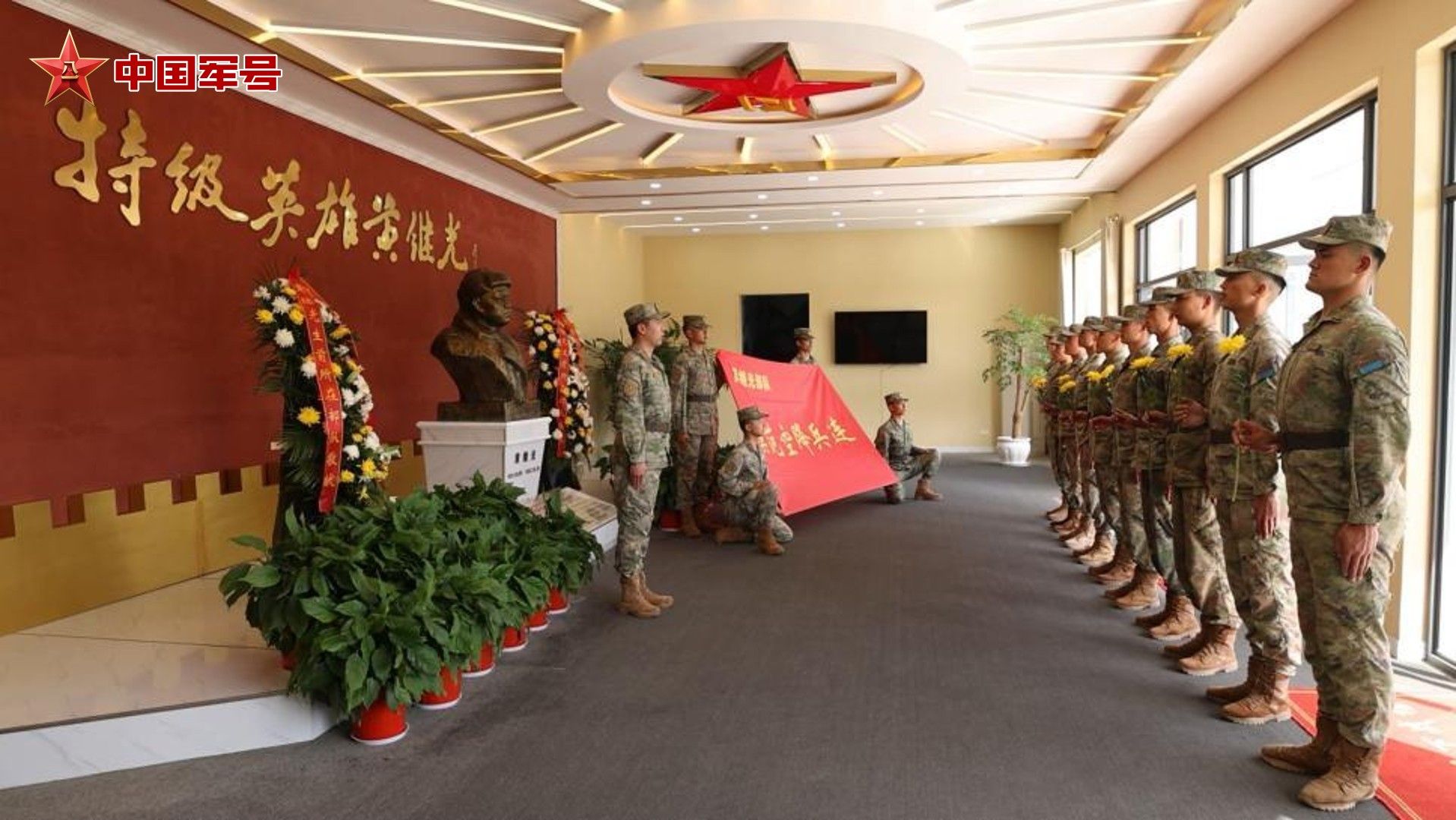 活動現(xiàn)場,“黃繼光英雄連”連旗被戰(zhàn)士緩緩展開,官兵們整齊列隊(duì),神情莊重,目光所及是英雄的方向。他們手捧菊花,在黃繼光銅像前深深鞠躬,將鮮花輕輕放在基座上,堅(jiān)定的眼神里,滿是對英雄的敬仰與傳承的決心。