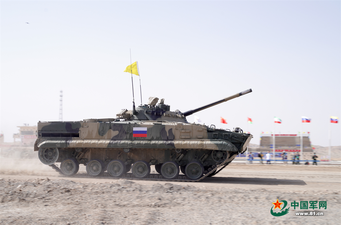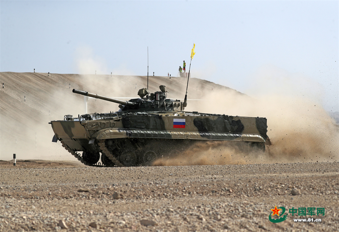 俄羅斯參賽隊駕駛步戰(zhàn)車疾馳在賽道上。羅興倉 攝