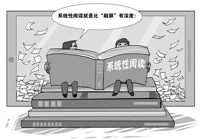 記者:信息時(shí)代,移動(dòng)互聯(lián)網(wǎng)的普及,改變了人們的生活方式,也改變了一些人的閱讀方式。借助電子設(shè)備的便捷化閱讀雖能把“碎片化”時(shí)間利用起來(lái),卻也很容易把整塊時(shí)間“碎片化”。這種缺乏計(jì)劃、被動(dòng)接受式的“淺閱讀”,“一邊獲得了信息,一邊卻打亂了邏輯”。