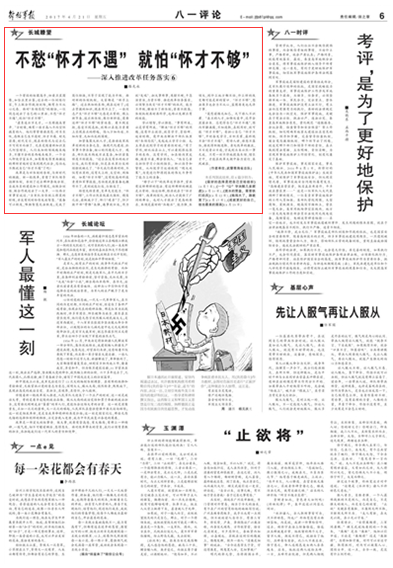 “脖子以下”的改革逐步推開,官兵有這樣那樣的想法、有這樣那樣的顧慮是正常的。怕這怕那,根源就在于“懷才不夠”。改革的深化,既為人才提供了廣闊的舞臺(tái),也對(duì)人才提出了更高的要求。本領(lǐng)是最好的“壓艙石”。能力強(qiáng)、本領(lǐng)大,到什么地方都不怕,什么樣的改變都可能是新的窗口。“懷才不夠”,想法再多也會(huì)力不從心,藍(lán)圖再美也無濟(jì)于事。