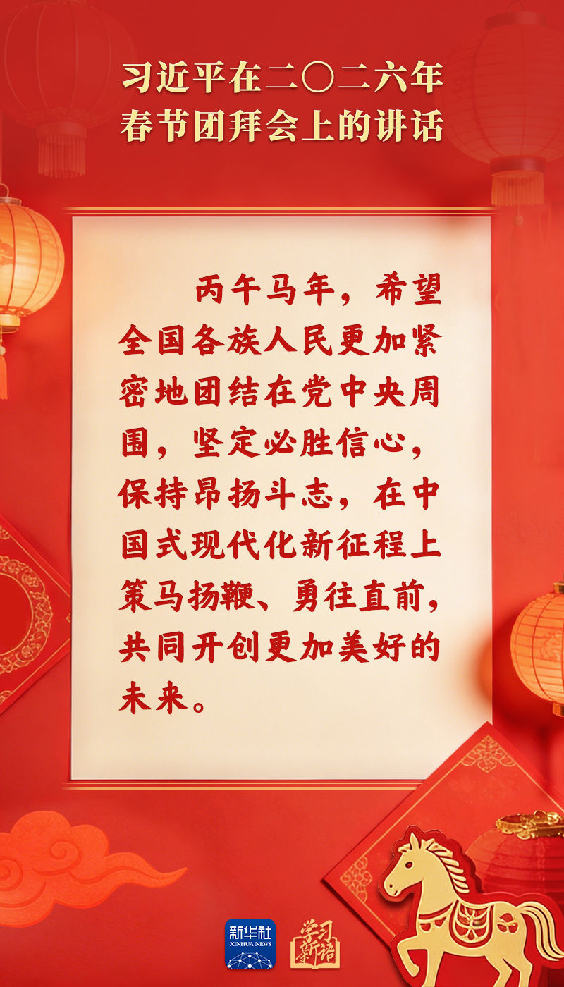 辭舊歲,賀新春。中共中央、國(guó)務(wù)院14日上午在人民大會(huì)堂舉行2026年春節(jié)團(tuán)拜會(huì)。習(xí)近平總書記發(fā)表講話,代表黨中央和國(guó)務(wù)院,向全國(guó)各族人民,向香港特別行政區(qū)同胞、澳門特別行政區(qū)同胞、臺(tái)灣同胞和海外僑胞拜年。