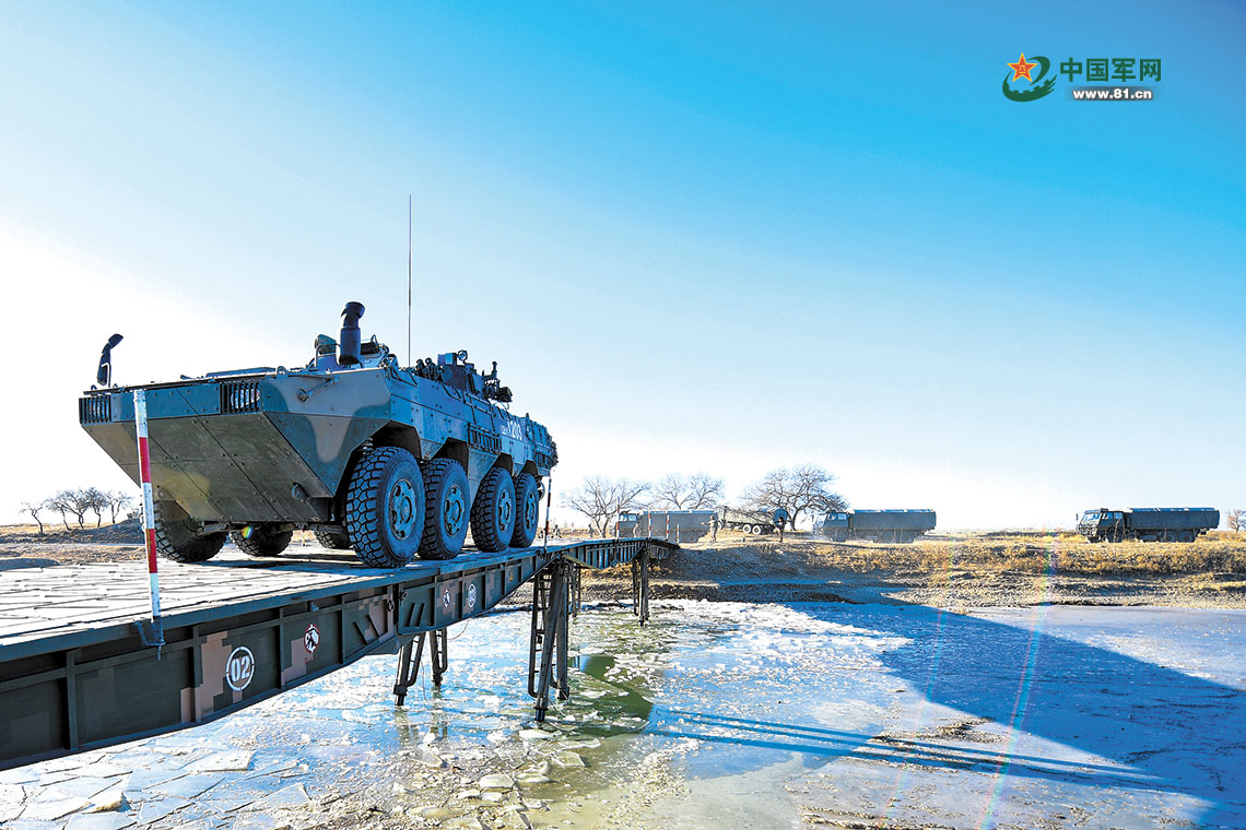 圖①:車輛裝備通過重型機(jī)械化橋。