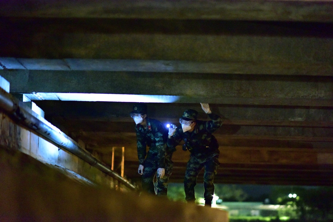 8月1日凌晨,武警廣東總隊(duì)執(zhí)勤第三支隊(duì)官兵在深圳市羅湖區(qū)文錦渡口岸附近檢查跨境公路橋情況。