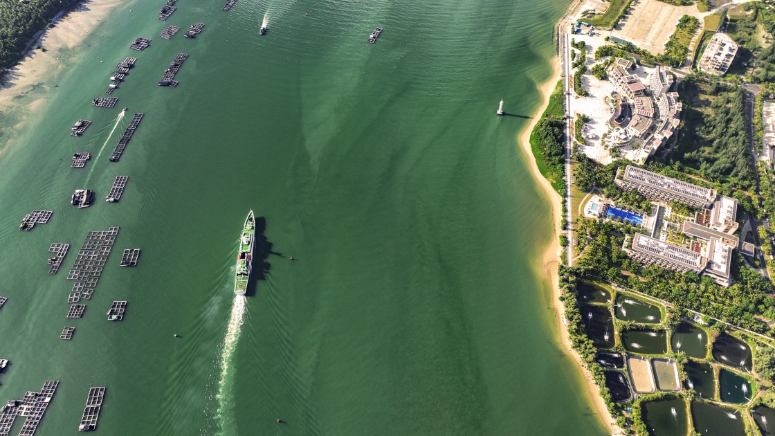 8月1日,中國(guó)海警局直屬第四局永興艦在海南清瀾港巡航,為海南自貿(mào)港建設(shè)保駕護(hù)航(無(wú)人機(jī)照片)。