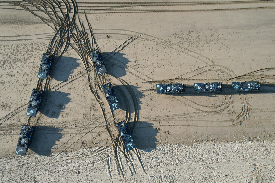 8月1日,海軍陸戰(zhàn)隊(duì)某旅擺出“八一”字樣慶祝節(jié)日的到來(lái)(無(wú)人機(jī)照片)。