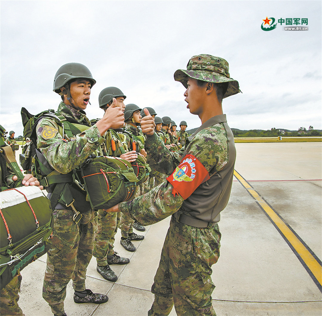 清晨,某軍用機(jī)場(chǎng),數(shù)百名突擊隊(duì)員快速披掛傘具,按照戰(zhàn)斗編組有序登機(jī)。伴著巨大的馬達(dá)轟鳴聲,數(shù)架戰(zhàn)機(jī)依次加力升空。