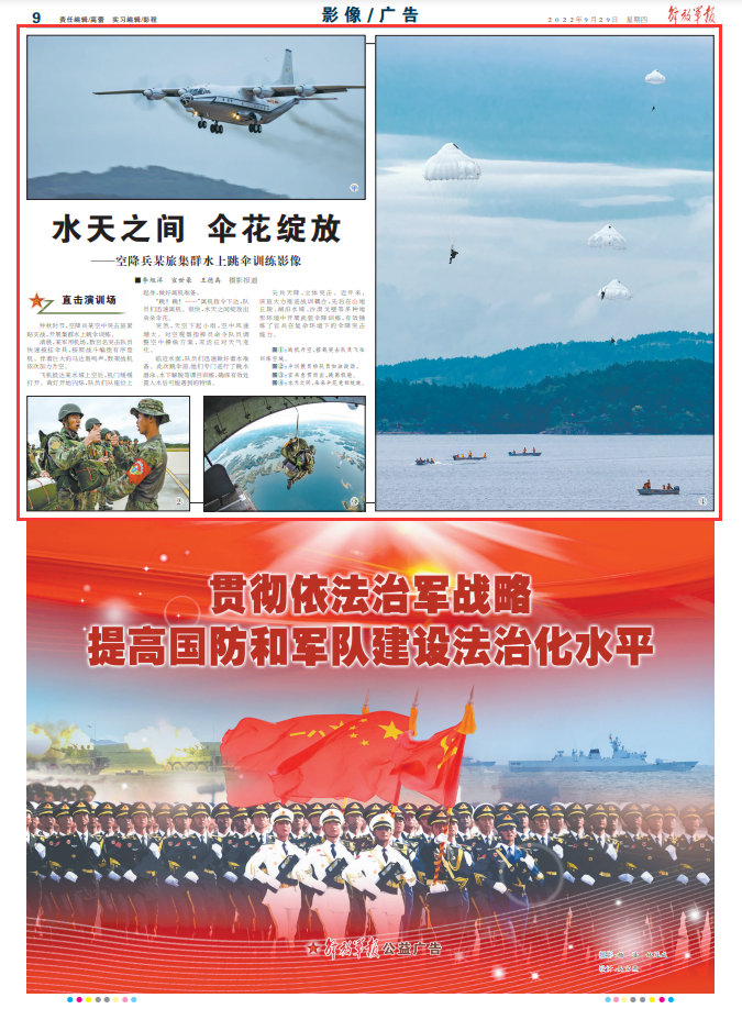 仲秋時(shí)節(jié),空降兵某空中突擊旅緊貼實(shí)戰(zhàn),開展集群水上跳傘訓(xùn)練。