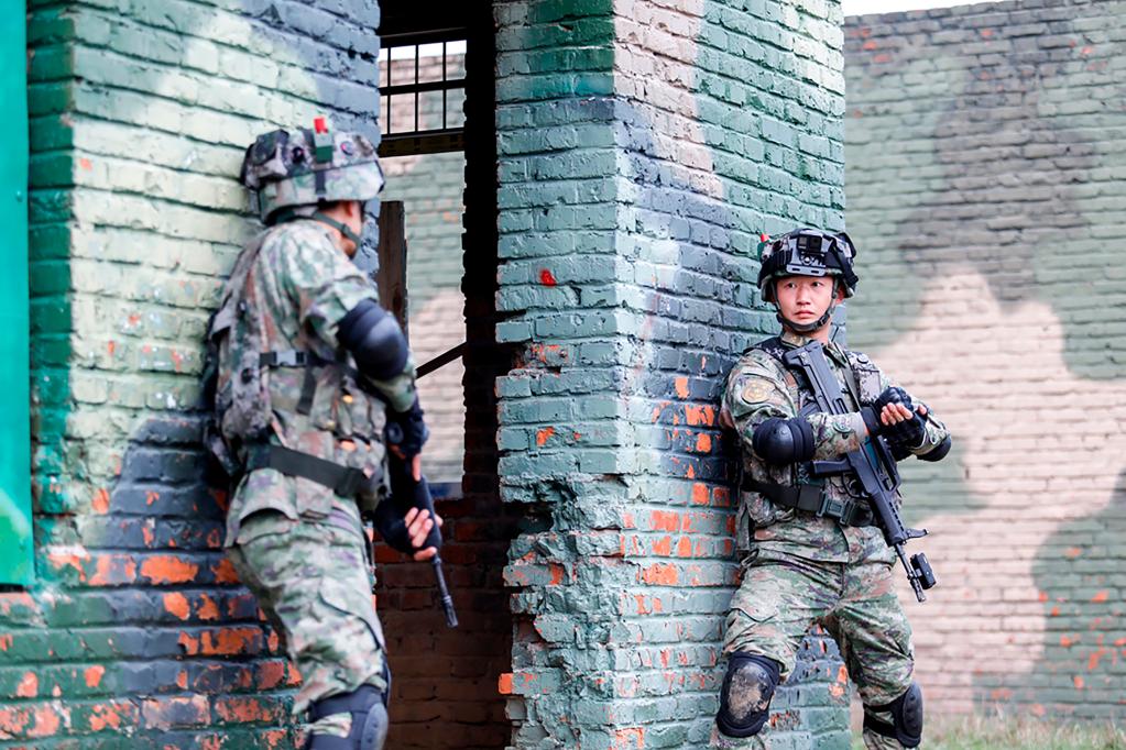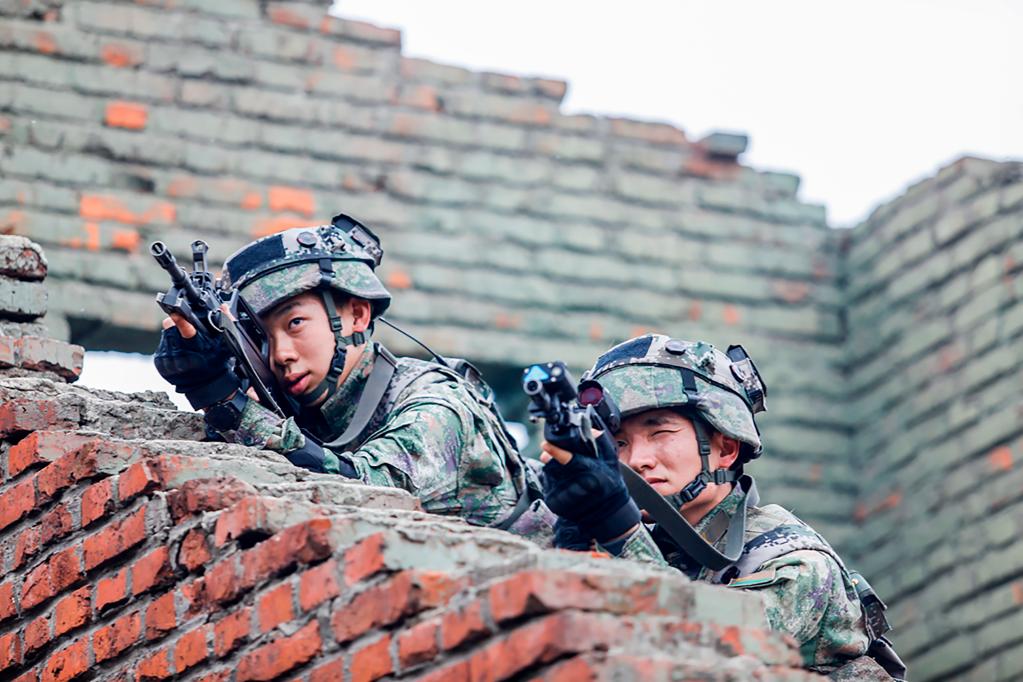 第71集團(tuán)軍“臨汾旅”組織官兵進(jìn)行城鎮(zhèn)攻防演練(2022年11月21日攝)。新華社發(fā)(何丹 攝)