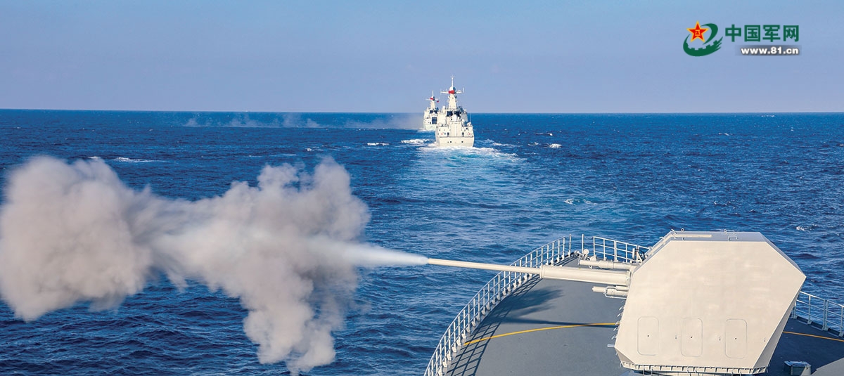 面對海上突發(fā)“敵情”,各艦隨即加速機(jī)動(dòng),轉(zhuǎn)入戰(zhàn)斗航向。不久,各艦主炮協(xié)同打擊,摧毀“敵”海上目標(biāo)。
