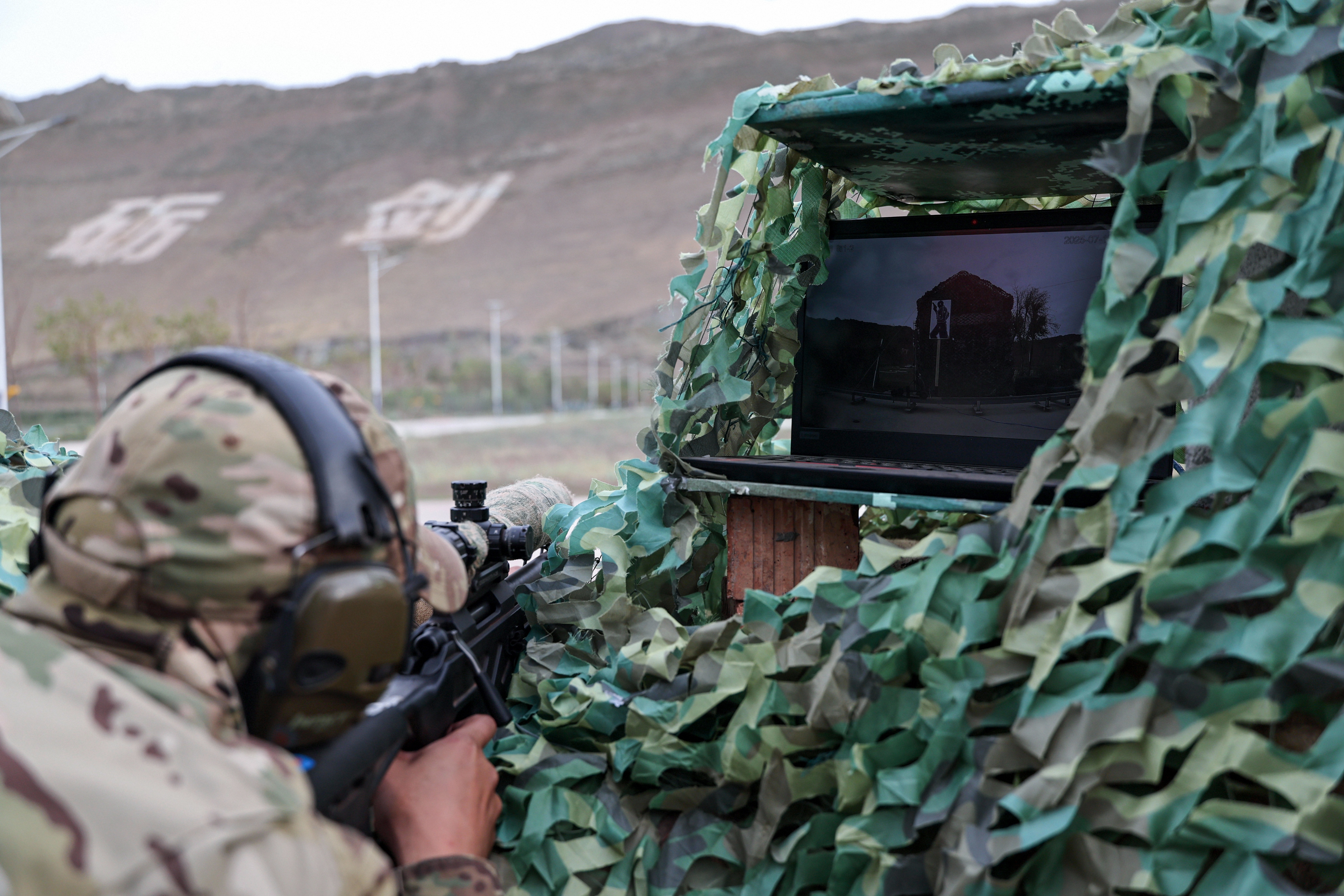 7月15日下午,在位于新疆烏魯木齊的武警部隊(duì)某訓(xùn)練基地,參加“鋒刃-2025”國(guó)際狙擊手射擊競(jìng)賽的各國(guó)參賽隊(duì)員展開激烈角逐。圖為蒙古國(guó)參賽隊(duì)員進(jìn)行“人機(jī)協(xié)同隔障狙擊”課目競(jìng)賽。侯崇慧 攝