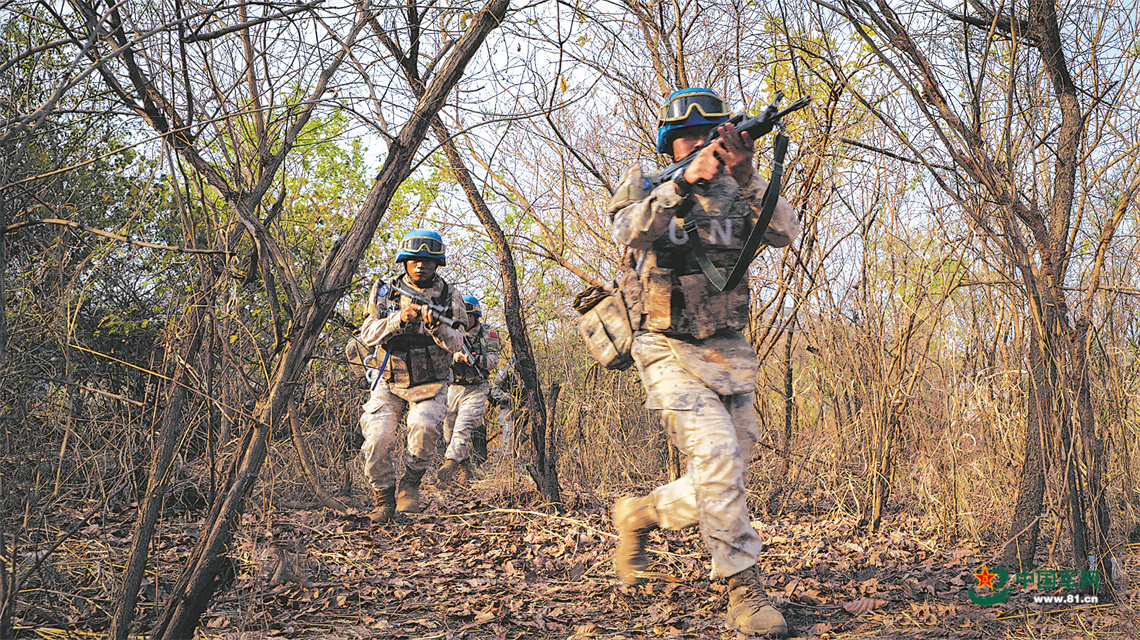 任務(wù)期間,維和步兵營(yíng)官兵開(kāi)展緊急出動(dòng)演練。王昆博攝