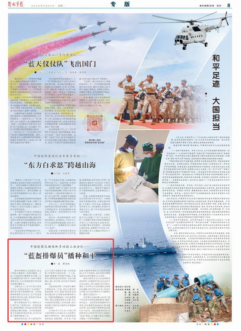 自2006年3月以來,中國(guó)已累計(jì)派出維和人員8800余人次赴黎巴嫩執(zhí)行維和任務(wù)。黎以邊境的雷場(chǎng)地形復(fù)雜、高度危險(xiǎn)。20年來,中國(guó)赴黎巴嫩維和部隊(duì)官兵接續(xù)清排200萬平方米雷場(chǎng),成功發(fā)現(xiàn)并銷毀地雷及各類未爆物1.8萬余枚。