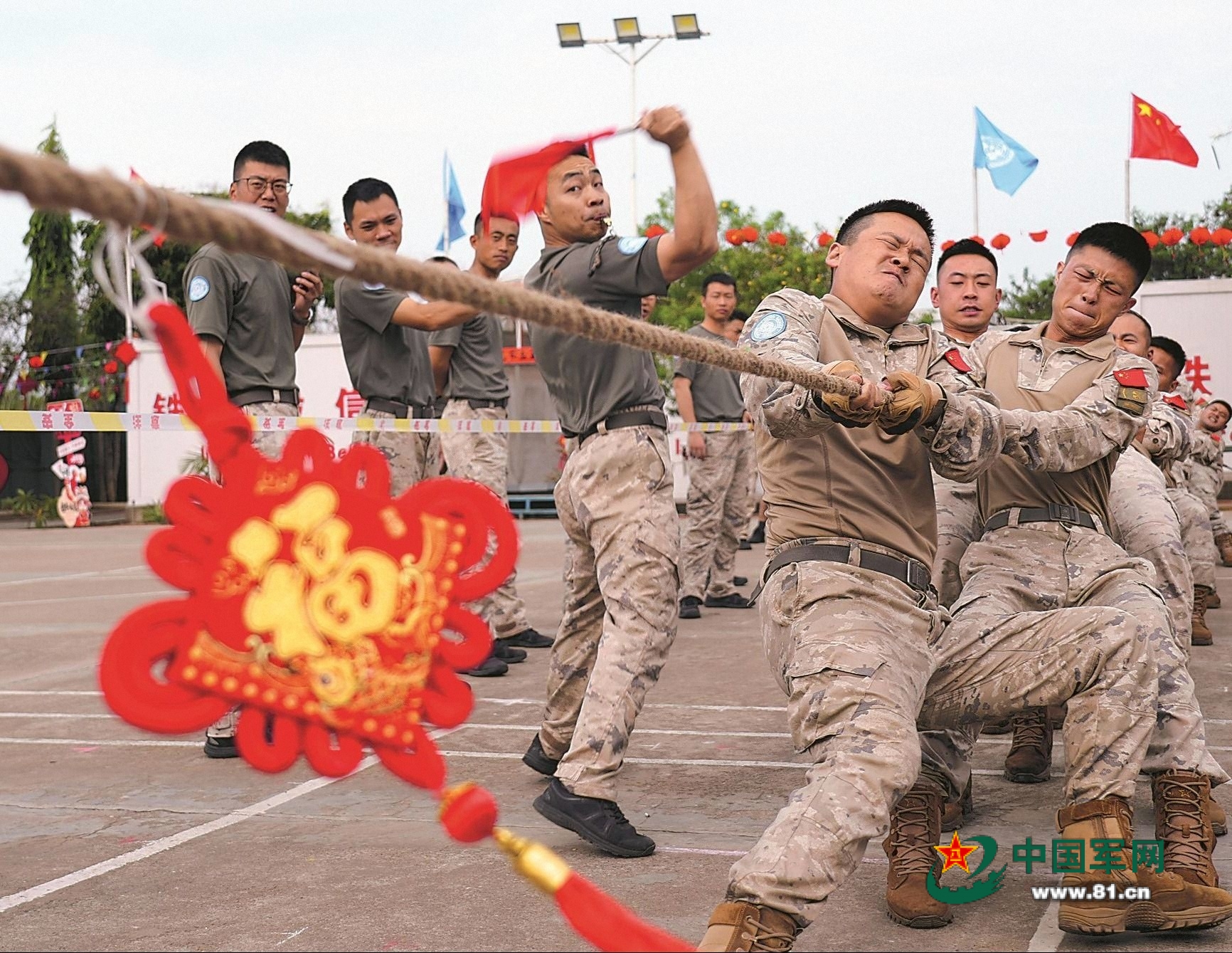 中國第12批赴南蘇丹(朱巴)維和步兵營官兵,在春節(jié)期間開展多種活動(dòng)豐富節(jié)日生活。圖為官兵舉行拔河比賽。周飛 攝