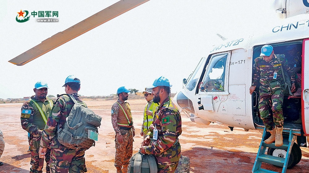 孟加拉國維和官兵走下直升機。黃 浩攝