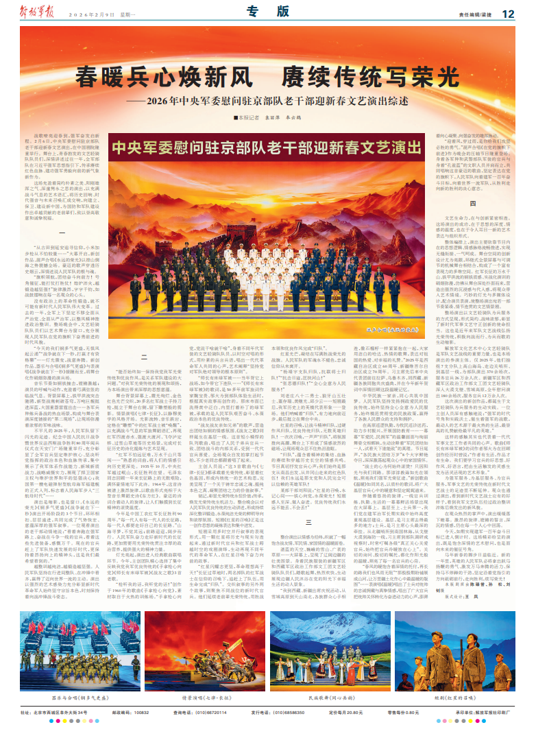 ——2026年中央軍委慰問駐京部隊老干部迎新春文藝演出綜述