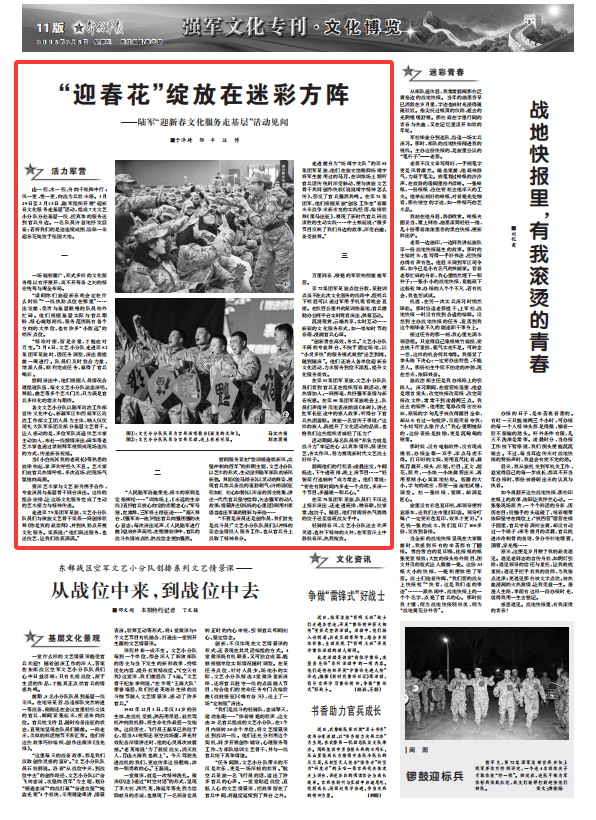 沉浸觀賞、云端共享、實時互動……新穎的文化服務形式,如一縷知時節(jié)的春雨,浸潤官兵心田。