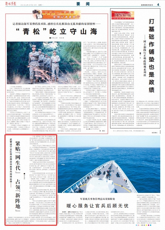 “政治工作過(guò)不了網(wǎng)絡(luò)關(guān)就過(guò)不了時(shí)代關(guān),只有積極運(yùn)用網(wǎng)絡(luò)新技術(shù)、占領(lǐng)網(wǎng)絡(luò)新陣地,才能把政治工作的威信樹(shù)立起來(lái)、威力發(fā)揮出來(lái)?!痹撝ш?duì)領(lǐng)導(dǎo)介紹,他們緊貼“網(wǎng)生代”官兵成為部隊(duì)主體的實(shí)際,將思想政治教育向網(wǎng)絡(luò)延伸,探索建立以同學(xué)習(xí)、同分享、同評(píng)論等為主要內(nèi)容的工作機(jī)制,推動(dòng)教育從“單向灌輸”向“雙向互動(dòng)”轉(zhuǎn)變,從源頭上提升思想政治教育質(zhì)效。