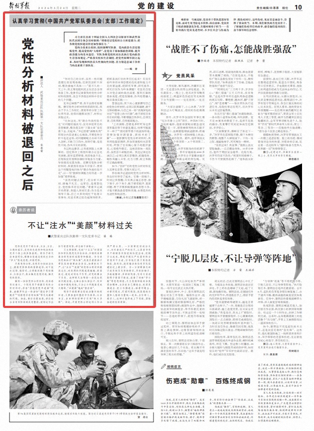 “比如這處,用‘聯(lián)合作戰(zhàn)經(jīng)驗(yàn)不足’對(duì)問(wèn)題輕描淡寫(xiě),沒(méi)有深挖背后的思想根源,整改落實(shí)的‘下篇文章’沒(méi)有落下去、實(shí)起來(lái)?!睍?shū)記指著“演練失利”那部分內(nèi)容語(yǔ)重心長(zhǎng)地說(shuō),開(kāi)展黨性分析不是走過(guò)場(chǎng),對(duì)問(wèn)題蜻蜓點(diǎn)水卻不深入剖析,不敢刀口向內(nèi)、刮骨療毒,是黨性不純、作風(fēng)不實(shí)的表現(xiàn)。