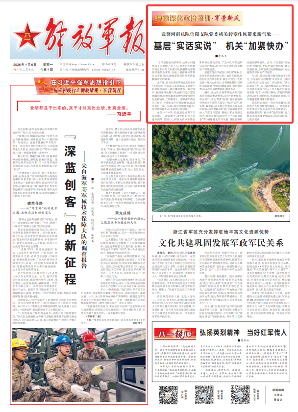 滲水的公寓房一周內(nèi)完成翻修,損壞的無人機很快得到修復(fù)……隨著該支隊黨委機關(guān)服務(wù)基層作風持續(xù)轉(zhuǎn)變,一批困擾基層的“撓頭事”迎刃而解,官兵練兵備戰(zhàn)熱情更加高漲,推動部隊戰(zhàn)斗力穩(wěn)步提升。