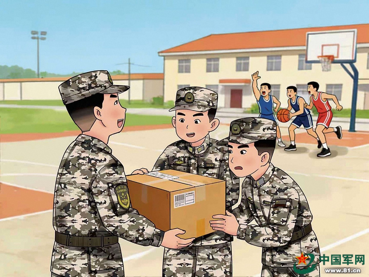 快遞送到時,恰逢崔昊正組織大家進(jìn)行籃球比賽,手機(jī)也調(diào)成了震動,半天沒接快遞員電話。快遞員正愁無法聯(lián)系時,看到幾名外出歸隊的戰(zhàn)士,便請他們幫忙簽收,這才有了開頭的一幕。