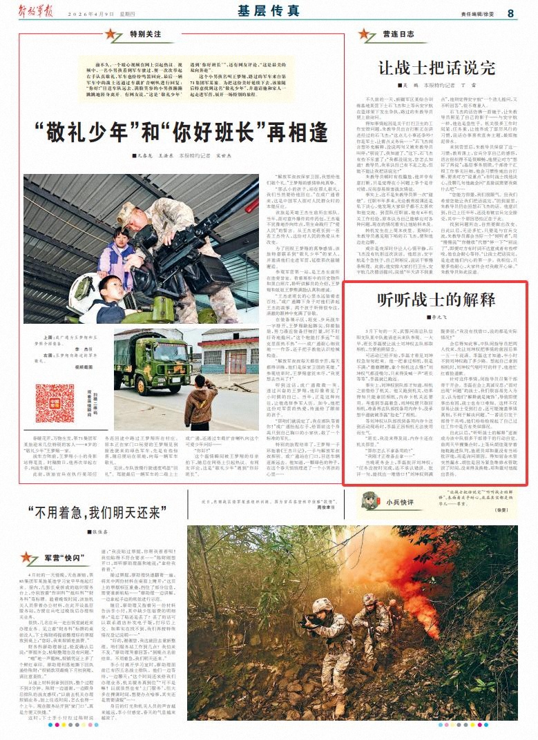 針對這件事情,閔指導(dǎo)員召集干部骨干開會(huì)。李磊在會(huì)上真誠反思:“面對出現(xiàn)‘問題’的戰(zhàn)士,我們很容易先入為主,認(rèn)為他們‘解釋就是掩飾’,導(dǎo)致即便事出有因,戰(zhàn)士也有口難辯。這樣不僅容易讓戰(zhàn)士受到打擊,還可能掩蓋事情真相,不利于解決問題。”一番話引發(fā)干部骨干共鳴,他們紛紛檢視起了自己過往工作中是否有類似情況。