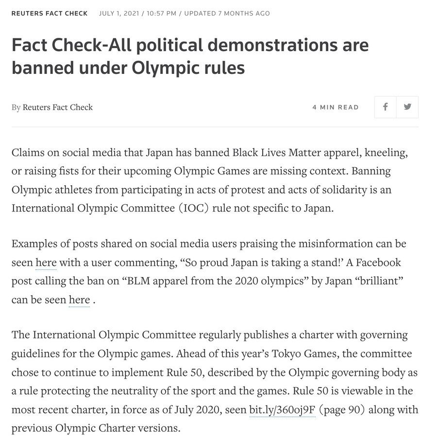 遵守《奧林匹克憲章》和當(dāng)?shù)胤煞ㄒ?guī),歷來是每一位參賽選手的責(zé)任和義務(wù),這本來就是一件毫無爭議的事情。去年,路透社在一篇報道中為日本禁止運(yùn)動員在東京奧運(yùn)會期間宣揚(yáng)政治觀點的做法進(jìn)行辯護(hù),稱這種禁令并非只有日本實行,而是國際奧委會一以貫之的規(guī)定。這篇報道還特意指出,國際奧委會在東京奧運(yùn)會前決定繼續(xù)實行奧林匹克憲章第50條,以此維持體育運(yùn)動的中立性。