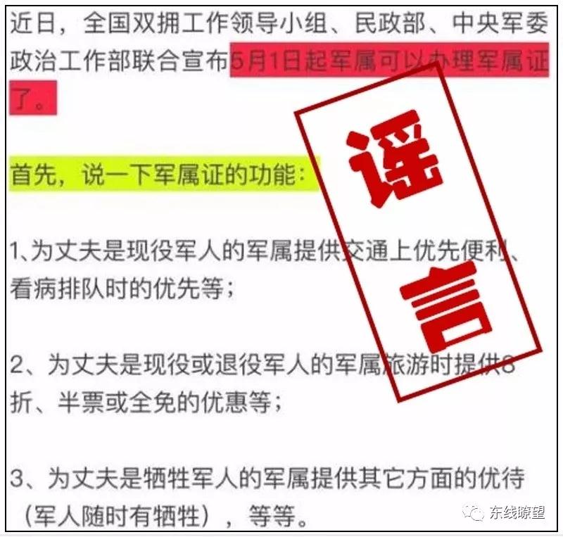 事件:今年以來,多個(gè)網(wǎng)站、微信群不時(shí)就會(huì)上傳一批有關(guān)軍人軍屬利益的“紅頭文件”。3月份,一份《中華人民共和國退役軍官法案(草稿)》在涉軍微信群里熱傳,里面關(guān)于“國家建立軍人公墓,退役軍官可安葬在國家公墓”等“政策”引發(fā)官兵熱議。有的發(fā)帖稱,從今年5月1日起,“軍屬可統(tǒng)一辦理軍屬證,作為看病優(yōu)先、旅游景點(diǎn)優(yōu)惠、享受其他優(yōu)待的身份證明?!?