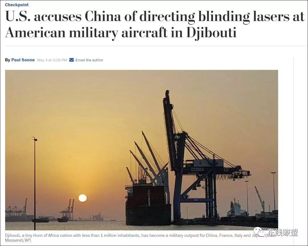 事件:從2018年4月中旬開始,美國方面就不斷渲染“中國駐吉布提基地使用激光照射美飛行員擾亂空域飛行安全”,“襲擊發(fā)生地的坐標(biāo)位于中國駐吉布提軍事基地西北部750米的亞丁灣水面上空”,五角大樓發(fā)言人戴娜·懷特在記者會(huì)上聲稱,中國在該基地使用軍用級(jí)別激光,致使兩名美飛行員眼睛受到輕傷。