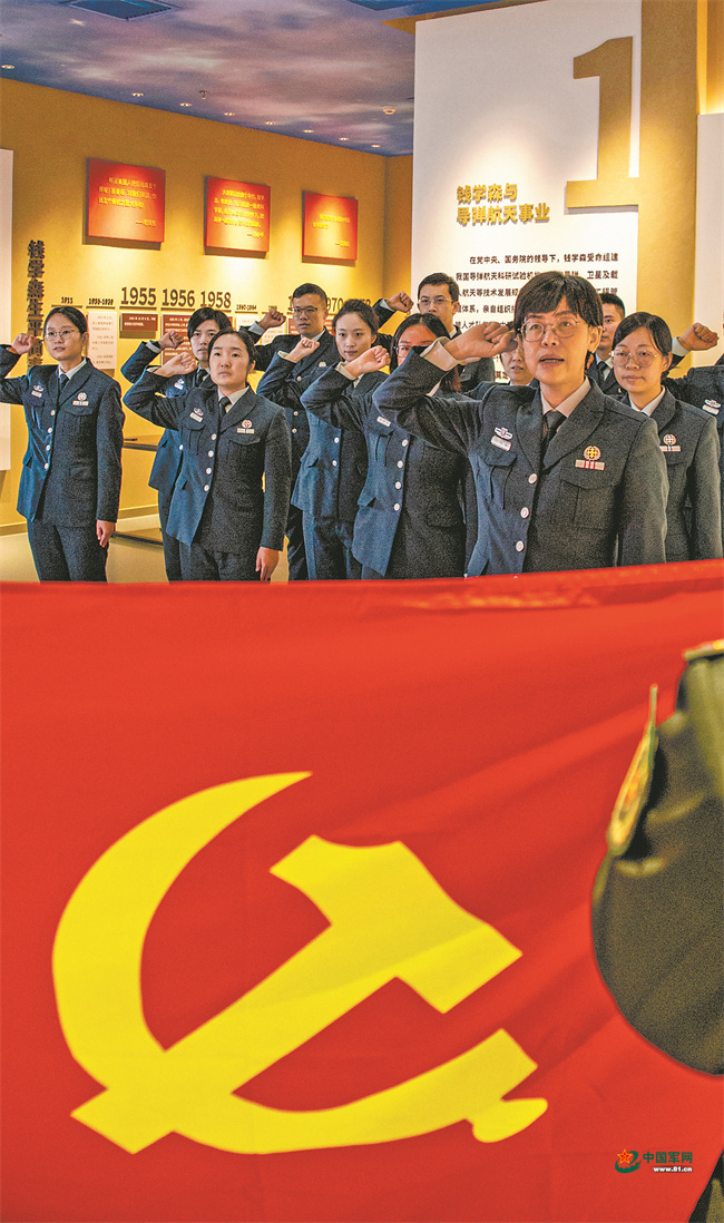 參觀見學(xué)活動結(jié)束后,白曉穎帶領(lǐng)文職人員黨員重溫入黨誓詞。